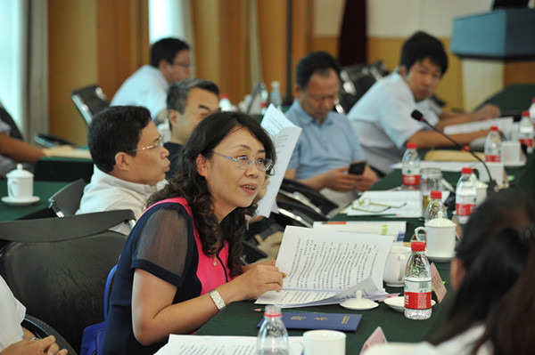 圖為藥品監(jiān)管文化建設(shè)研究專業(yè)委員會成員討論委員會工作制度與工作計劃。