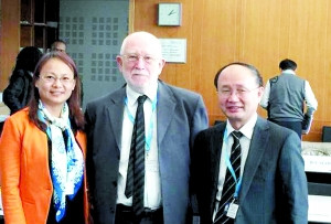 中檢院和英國NIBSC共同主導的EV71中和抗體國際標準品通過大會審議,圖為雙方代表人員合影(右一為中檢院副院長王軍志)