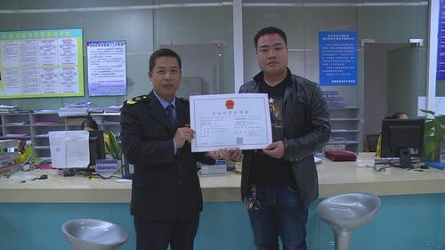 圖為2015年12月4日,廣西壯族自治區(qū)陽朔縣食品藥品監(jiān)督管理局發(fā)放首張《食品經(jīng)營(yíng)許可證》。廣文 攝