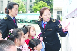 湖北省襄陽(yáng)市廣泛開(kāi)展“食品安全進(jìn)校園”活動(dòng)。圖為襄陽(yáng)市食品藥品監(jiān)管局工作人員正在某小學(xué)宣講食品安全知識(shí)。 李楠 攝