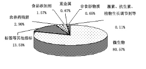 2015年,上海全市共監(jiān)督抽檢各類食品樣品254540件,合格率為98.2%。根據(jù)食品抽檢結(jié)果分析,導(dǎo)致上海食品安全不合格的主要因素是微生物、農(nóng)獸藥殘留、食品添加劑、重金屬、非食用物質(zhì)、激素、抗生素、植物生產(chǎn)調(diào)節(jié)劑和標(biāo)簽等其他指標(biāo)不合格。