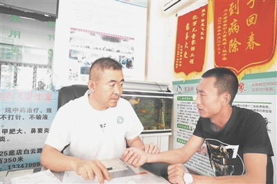 談話間,來了一位30多歲的男性患者,他肚子疼了兩天,吃了幾副中藥不見效。徐志飛詳細詢問患者,喝酒了嗎?吃不吃辣?吃中藥期間忌口了嗎?原來前段時間患者吃了小龍蝦而且吃中藥期間也沒有忌口。徐志飛帶著患者又做了進一步的檢查,并叮囑患者家屬,患者在服用中藥期間,魚、蝦、雞蛋、羊肉,還有香菜、韭菜都要忌口,吃藥才有效。
