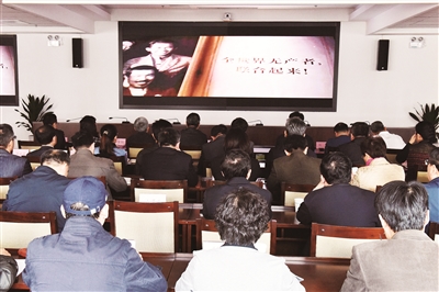 圖為河北省石家莊市食品藥品監(jiān)管局黨組理論學(xué)習(xí)中心組(擴(kuò)大)學(xué)習(xí)黨的十九大報告/攝影報道 李晴 翟永剛