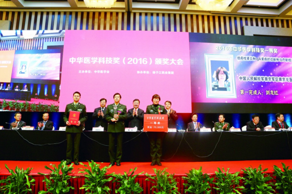 圖為揚(yáng)子江藥業(yè)獨(dú)家資助的中華醫(yī)學(xué)科技獎(jiǎng)(2016)頒獎(jiǎng)大會(huì)現(xiàn)場(chǎng)。