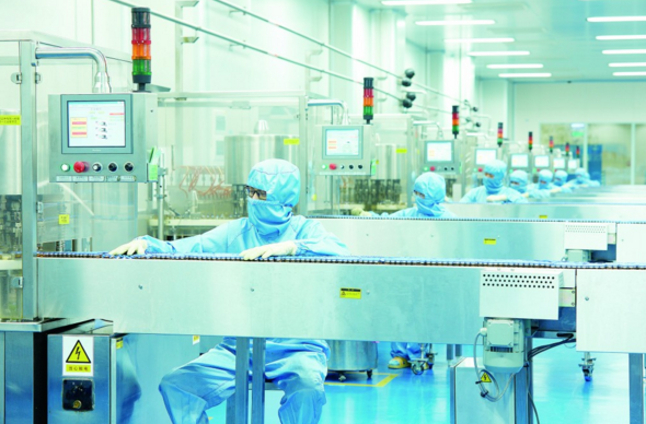 圖為揚(yáng)子江藥業(yè)先進(jìn)的生產(chǎn)流水線。