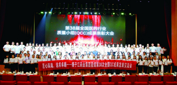 圖為揚(yáng)子江藥業(yè)獲獎(jiǎng)代表在第38屆全國(guó)醫(yī)藥行業(yè)質(zhì)量小組(QCC)成果表彰大會(huì)現(xiàn)場(chǎng)合影留念。