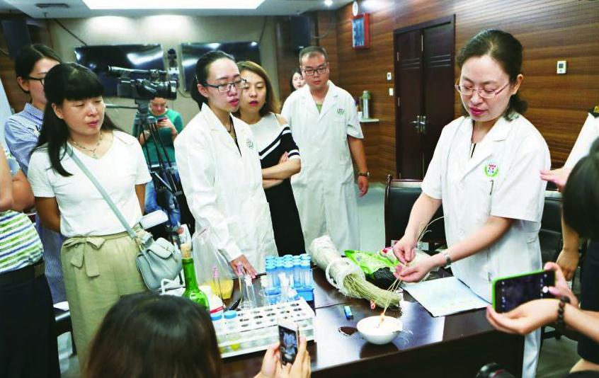圖為陜西省食藥監(jiān)局工作人員在“借你一雙慧眼——科學(xué)辨別食品安全謠言”沙龍現(xiàn)場(chǎng)進(jìn)行實(shí)驗(yàn)。本報(bào)記者賀一辰/攝