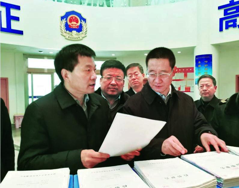 圖為陜西省食品藥品監(jiān)管局局長(zhǎng)張小寧(前排右)在寶雞市眉縣調(diào)研食品藥品檢驗(yàn)檢測(cè)工作。蔡玉龍/攝