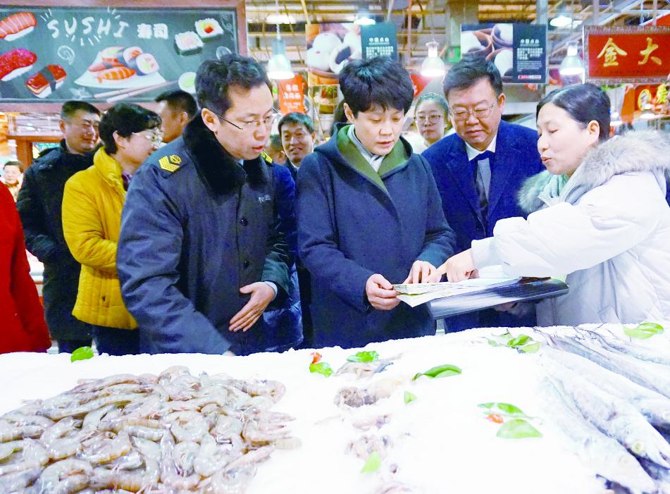圖為2月1日山西省副省長曲孝麗(前排左二)帶隊在太原市小店區(qū)美特好超市檢查春節(jié)食品供應和食品安全保障情況。本報記者李平林/攝