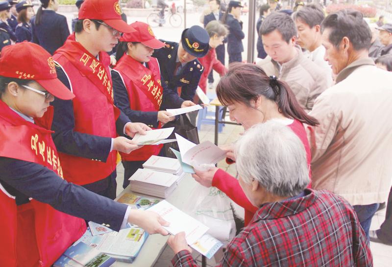 圖為福州市馬尾區(qū)食品藥品監(jiān)管部門(mén)工作人員向市民發(fā)放消費(fèi)投訴典型案例手冊(cè)/攝影 楊宇輝