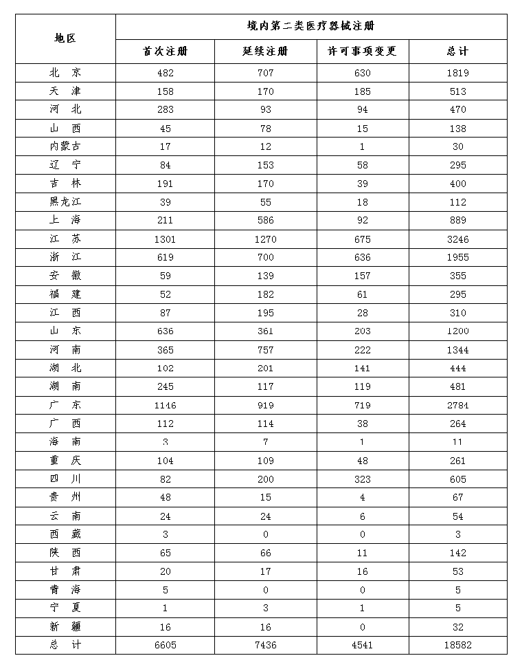 ?。ㄒ唬┚硟?nèi)第二類醫(yī)療器械注冊情況