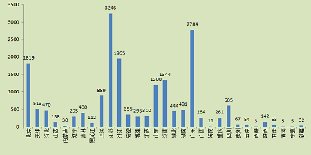 圖16.各省境內(nèi)第二類醫(yī)療器械注冊數(shù)據(jù)圖