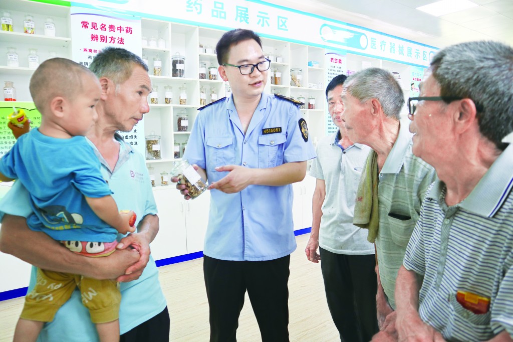 圖為日前科普基地的工作人員向前來參觀的群眾講解藥食同源科普知識。本報記者 李舒雯 通訊員 易慧 攝影報道