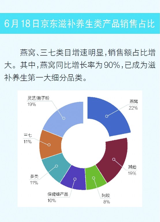 京東醫(yī)藥的數(shù)據(jù)顯示,滋補類商品用戶中,有一半為25歲~35歲的年輕人,年輕的養(yǎng)生族趁著年中大促囤貨。6月1~10日,京東滋補養(yǎng)生類銷售額同比增長超70%,6月1日僅79分鐘,交易額趕超去年6月1日全天。