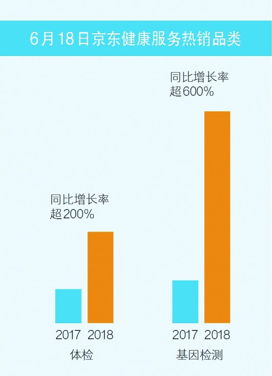 6月1~18日,京東健康服務(wù)銷售額較去年同比增幅超過300%,微基因個人基因檢測、和睦家九價HPV疫苗成為最受歡迎的健康服務(wù)產(chǎn)品。京東攜手和睦家醫(yī)療提供的九價HPV疫苗預(yù)約服務(wù)在6月11日10點開售,首批疫苗預(yù)約服務(wù)迅速售罄。新推出的基因檢測也頗受消費者青睞,6月18日微基因個人基因組檢測產(chǎn)品交易額超過600萬元。