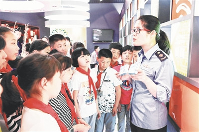 圖為紹興市局工作人員正在為小學(xué)生們講解食品安全知識(shí)