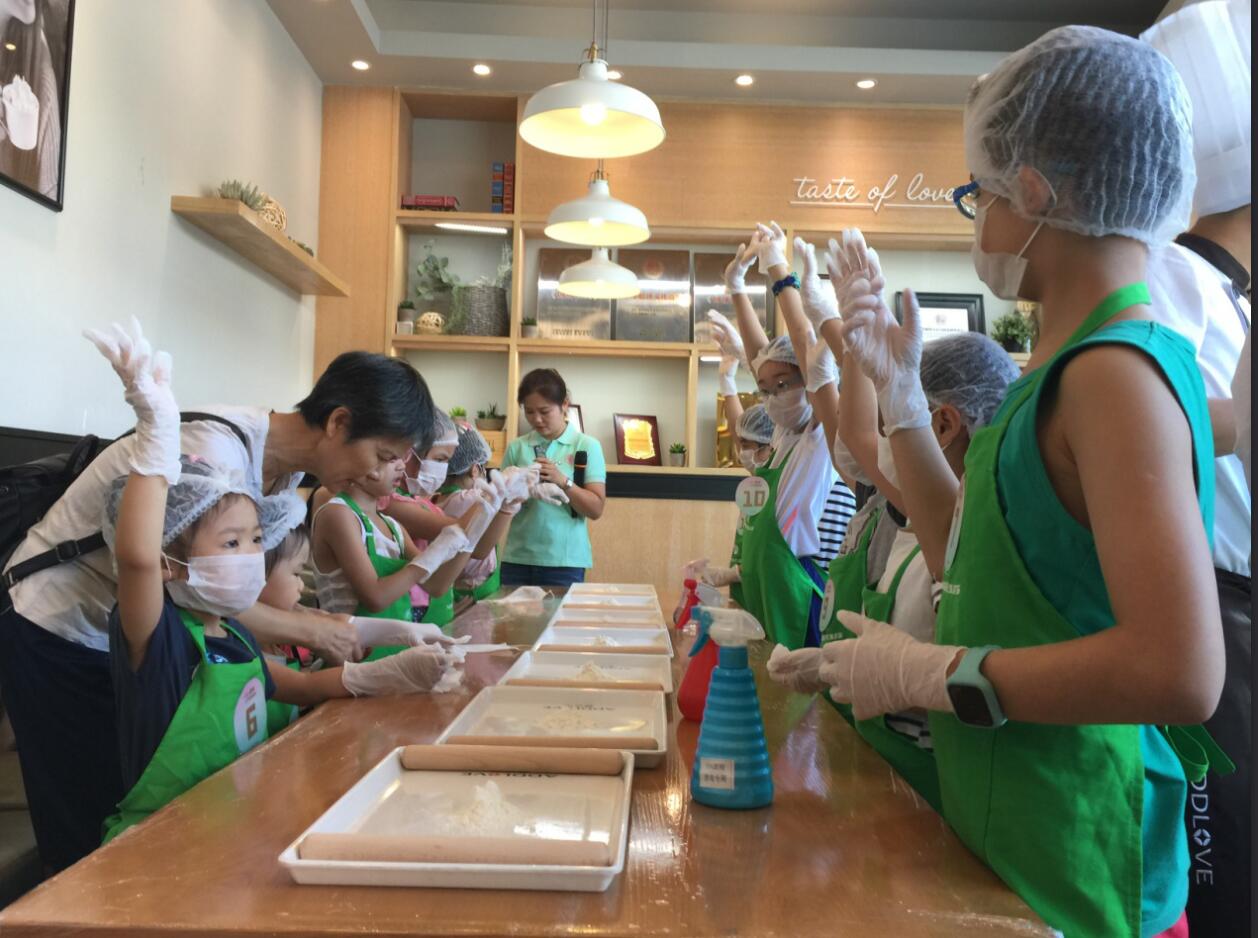 采風團現場參觀了解了烤柜臺、飲料臺、烘焙工作間等,“小記者”們更是饒有興趣地現場學習DIY制作起月餅來,并與月餅制作大師切磋“手藝”。