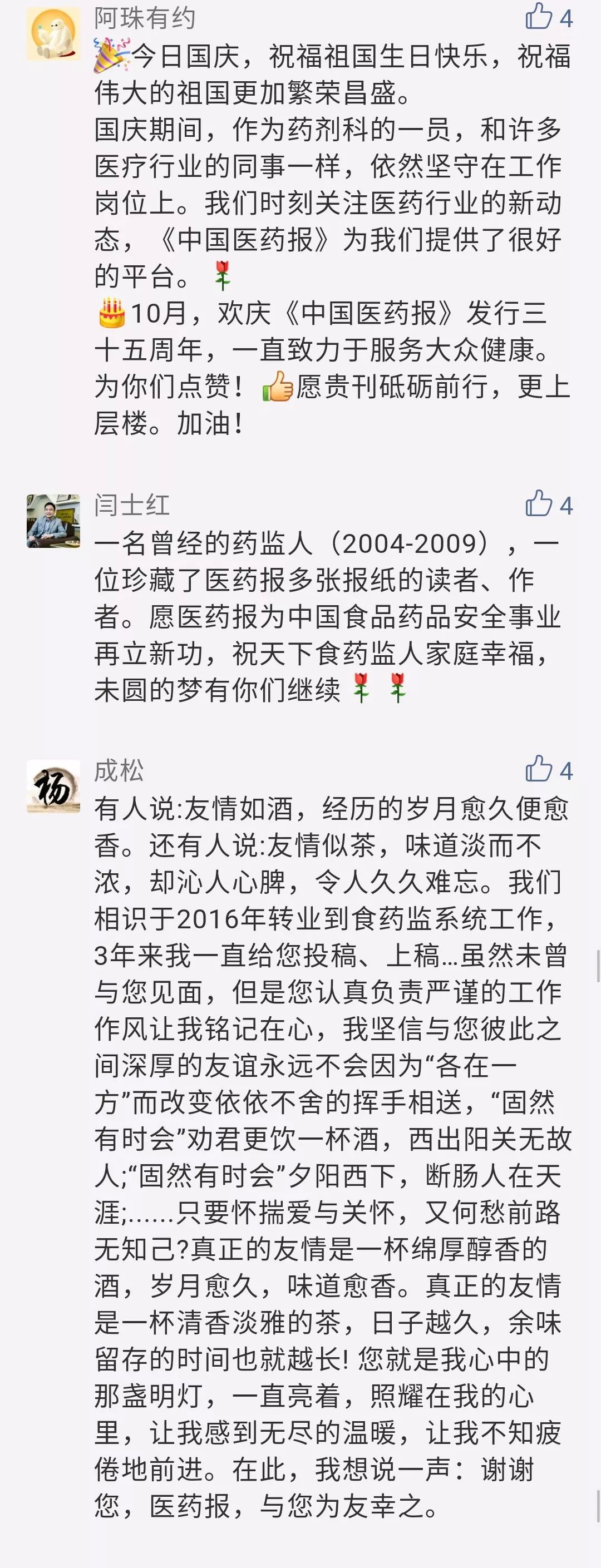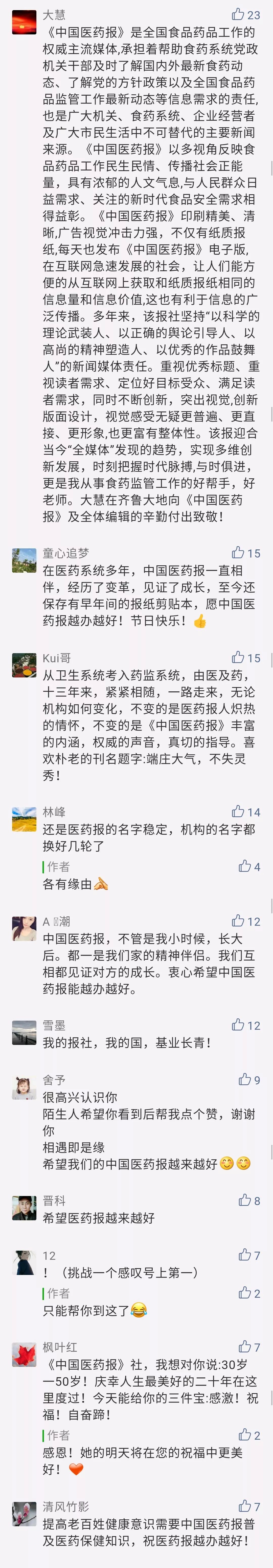 紙短情長,每一條評論都讓小編為之動容。《中國醫(yī)藥報》在眾多祝福中定當(dāng)不負眾望,不忘初心,砥礪前行!