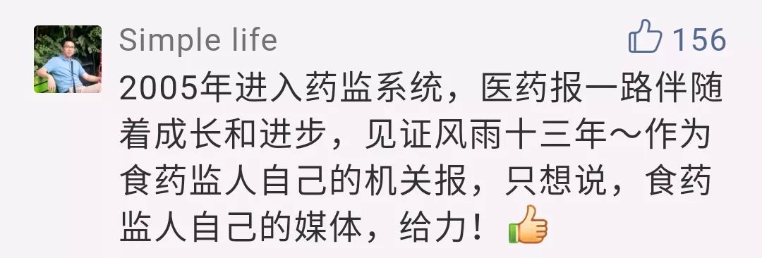 2005年進入藥監(jiān)系統(tǒng),醫(yī)藥報一路伴隨著成長和進步,見證風(fēng)雨十三年~作為食藥監(jiān)人自己的機關(guān)報,只想說,食藥監(jiān)人自己的媒體,給力!