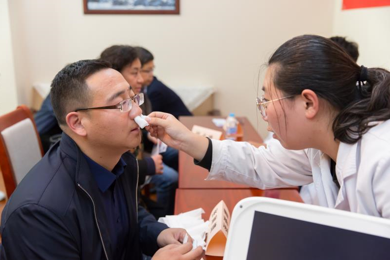 講座結(jié)束后,閆占峰主任和其團隊對參加講座的干部職工進行耳鼻喉科疾病的義診活動,共接診45人次。