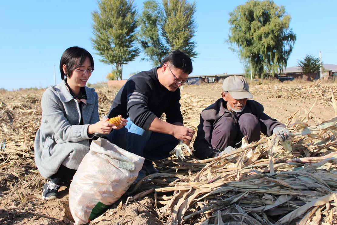 遼寧省錦州市食品藥品監(jiān)管局科技信息與宣傳應(yīng)急科科長、駐義縣頭道河鎮(zhèn)鄒家屯村第一書記兼駐村扶貧工作隊(duì)隊(duì)長劉玉磊(中)近日和扶貧干部范菲菲(左一)一起到農(nóng)田幫村民收玉米,詳細(xì)了解農(nóng)作物收成情況。孫淵 攝