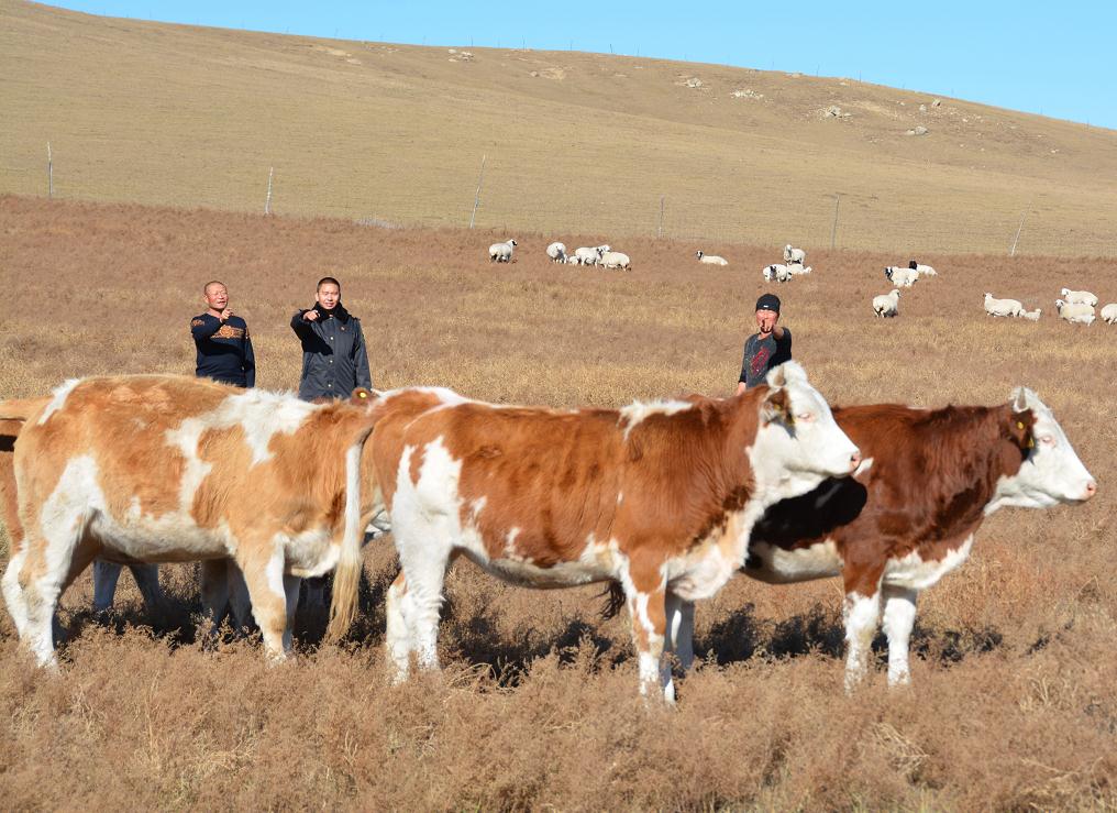 內(nèi)蒙古自治區(qū)西烏珠穆沁旗食藥工商質(zhì)監(jiān)局干部布日格德(中)擔任浩勒圖高勒鎮(zhèn)道倫達壩嘎查駐村第一書記8個月以來,深入了解貧困戶的生產(chǎn)生活狀況、致貧原因。他聯(lián)系旗扶貧辦為貧困戶申請的扶貧良種肉牛項目,已落實到戶。蘇日嘎拉圖 攝