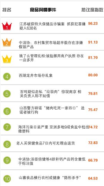 食品輿情排行榜|江蘇破獲特大保健品詐騙案