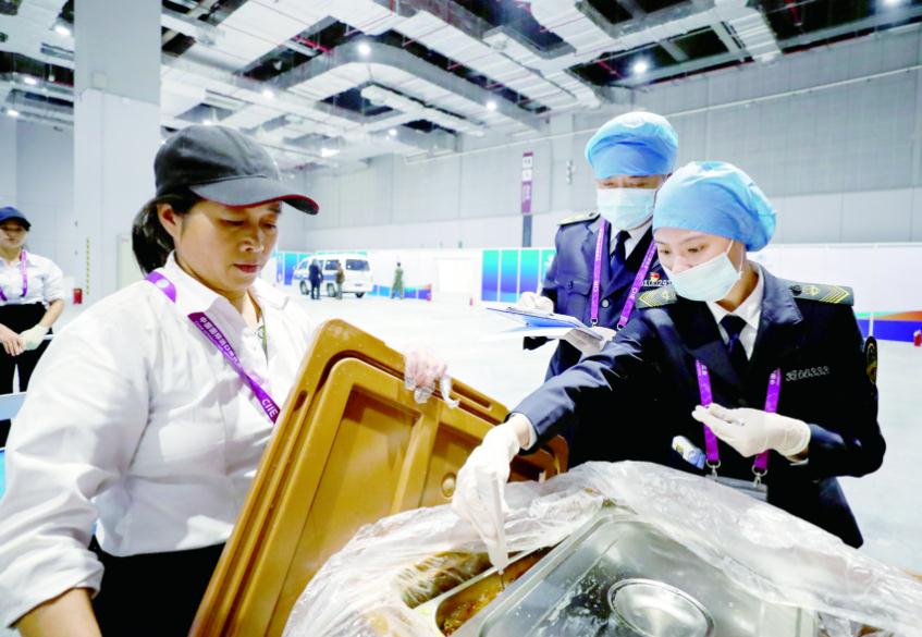 上圖為該局執(zhí)法人員在進博會現(xiàn)場檢測食品。陳炅瑋 攝