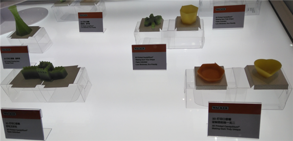 瓦克化學(xué)展出的主打技術(shù)就是它了?!安牧?、口感上,和普通口香糖差不多,區(qū)別在于3D打印可以實(shí)現(xiàn)私人訂制,做成不同的性狀、刻上自己的名字等,不過(guò),私人訂制成本會(huì)比較高,批量生產(chǎn)還是很劃算的。”工作人員告訴記者。