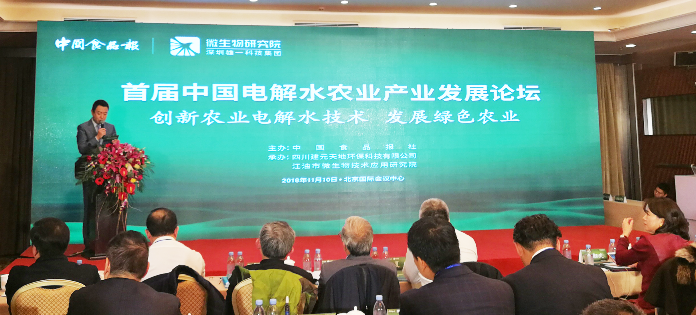 11月10日,由中國食品報(bào)社主辦,四川建元天地環(huán)??萍加邢薰炯敖褪形⑸锛夹g(shù)應(yīng)用研究院等共同承辦的“首屆中國電解水農(nóng)業(yè)產(chǎn)業(yè)發(fā)展論壇”在北京國際會議中心舉行,論壇以“創(chuàng)新農(nóng)用電解水技術(shù),發(fā)展綠色農(nóng)業(yè)”為主題,來自綠色農(nóng)業(yè)行業(yè)、綠色農(nóng)產(chǎn)品研究及電解水工藝處理等領(lǐng)域的百余名嘉賓與會,就電解水的應(yīng)用前景及發(fā)展趨勢等進(jìn)行了討論。