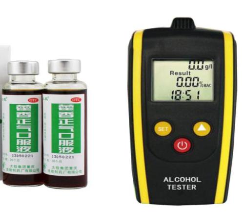 喝了1支藿香正氣液后,測(cè)試結(jié)果是酒精含量為0mg/100ml。兩支全部喝完,測(cè)試結(jié)果仍然為為0mg/100ml。