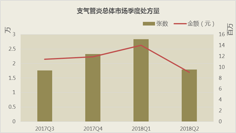 中國(guó)醫(yī)藥工業(yè)信息中心梳理了2017Q3~2018Q2期間上海樣本醫(yī)院支氣管炎相關(guān)處方數(shù)據(jù),一起走進(jìn)了解支氣管炎處方市場(chǎng)。
