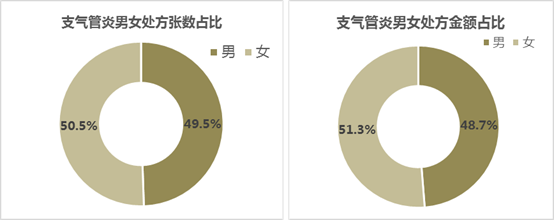 整體處方市場(chǎng)在性別方面,無(wú)明顯性別差異;在年齡方面,0~9歲兒童和60~70歲老年人容易患上支氣管炎。
