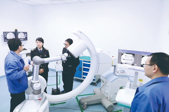 9∶10,高飛、謝立偉和東升鎮(zhèn)食藥監(jiān)所的馬佳怡等人匯合,來到第一家企業(yè)——北京天智航醫(yī)療科技股份有限公司檢查。這是生產(chǎn)我國自主研發(fā)的世界首臺創(chuàng)傷及脊柱骨科手術(shù)機(jī)器人“天璣”的企業(yè)。