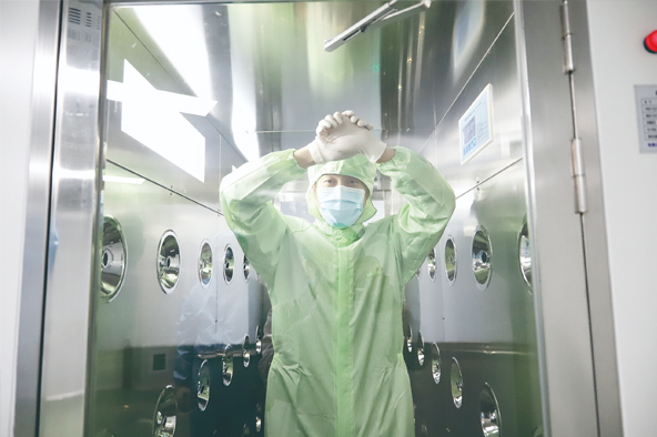 在北京全式金生物技術(shù)有限公司,監(jiān)管人員按照潔凈控制標(biāo)準(zhǔn),“全副武裝”接受風(fēng)淋。