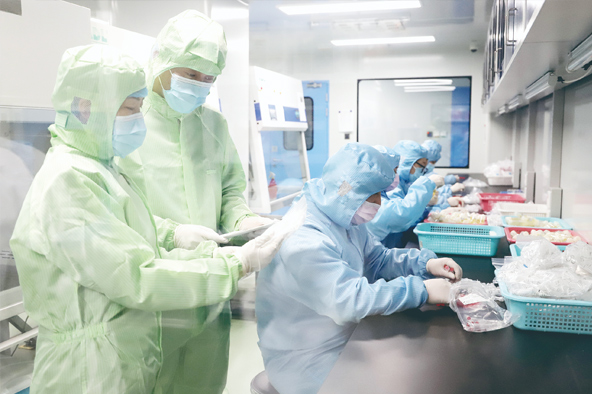 14∶00,監(jiān)管人員來到北京全式金生物技術(shù)有限公司檢查診斷試劑。進(jìn)入潔凈區(qū)前,他們嚴(yán)格按照程序接受健康檢查并登記,此外,更衣、換鞋、洗手、風(fēng)淋一樣都不少。有時(shí)監(jiān)管人員一天要檢查四五個車間,脫脫穿穿十多次,但這些程序絲毫不打折扣?!白龊脻崈舴雷o(hù)直接關(guān)乎產(chǎn)品質(zhì)量安全,‘正人先正己’,我們要給企業(yè)做表率?!瘪R佳怡說。