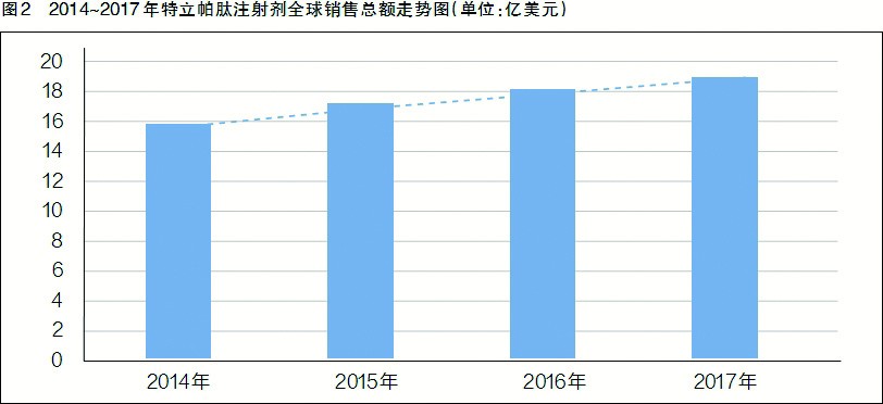 內(nèi)源性甲狀旁腺激素(PTH)由84個氨基酸組成,是骨骼和腎臟中鈣和磷酸鹽代謝的主要調(diào)節(jié)因子。禮來公司的原研產(chǎn)品特立帕肽〔rhPTH(1-34)〕是人內(nèi)源性甲狀旁腺激素的活性片段(1-34)。2017年,特立帕肽全球銷售額為18.8億美元,且連續(xù)多年持續(xù)穩(wěn)定增長,是抗骨質(zhì)疏松類藥物中的明星品種。