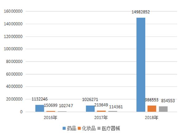 圖8 2016 ~ 2018 年藥品、化妝品、醫(yī)療器械數(shù)據(jù)量