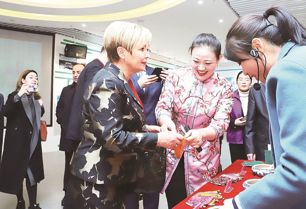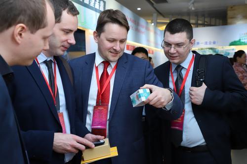 圖③為白云山中一、奇星藥業(yè)常務副總經理寧娜(中)與俄羅斯烏拉爾國立醫(yī)科大學校長(左)交流。 藍志華 攝