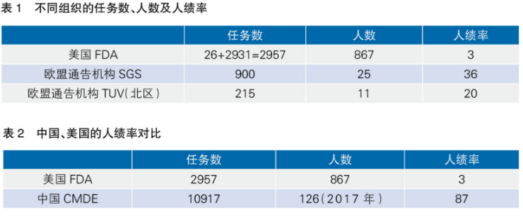 那么,能否直接采用美國(guó)的專業(yè)化項(xiàng)目管理人模式呢?回答這個(gè)問(wèn)題要考慮我國(guó)醫(yī)療器械技術(shù)審評(píng)中心(CMDE)的人員現(xiàn)狀。即使CMDE的人員可以擴(kuò)增到300人,與美國(guó)FDA也存在非常大的差距(見表2),因此效率也是我們?cè)诮M織設(shè)計(jì)上不得不考慮的目標(biāo)。所以,在短期內(nèi)不能直接采用美國(guó)的項(xiàng)目管理人模式??陀^需要決定了中國(guó)必須走出自己的路,設(shè)計(jì)出自己的項(xiàng)目管理人制度。