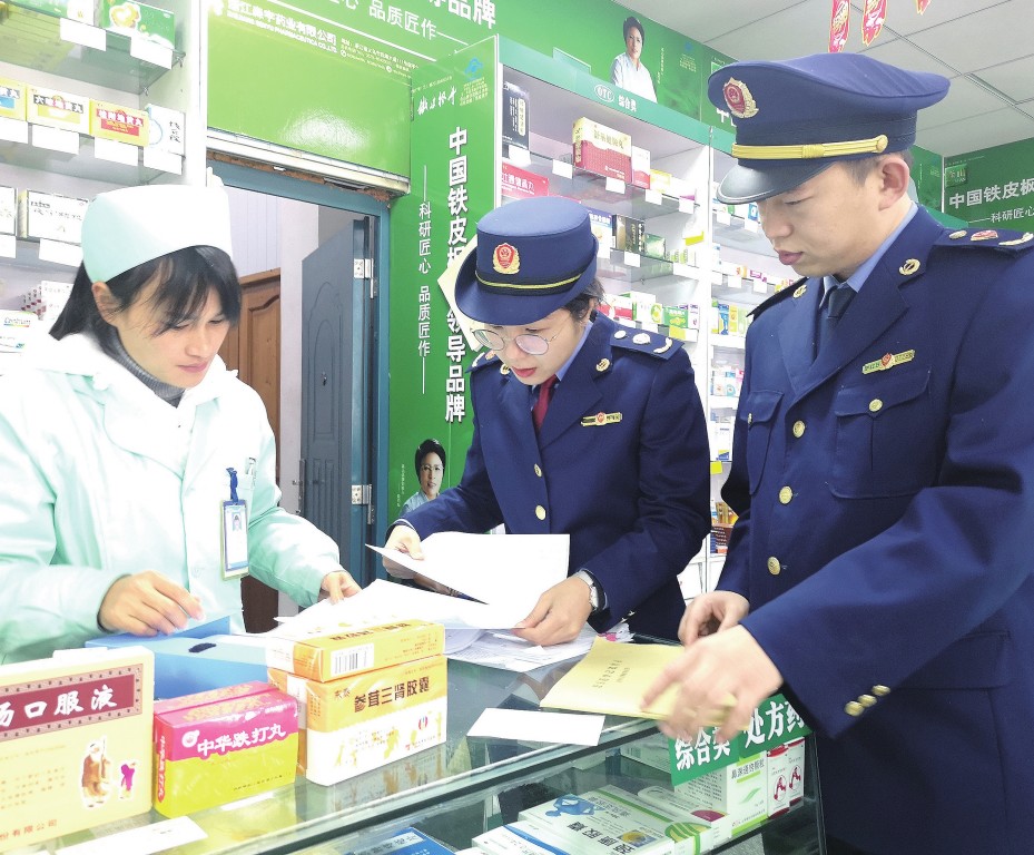 近日,浙江省寧波市象山縣市場(chǎng)監(jiān)管局定塘市場(chǎng)監(jiān)管所組織開(kāi)展藥械安全專項(xiàng)檢查行動(dòng),重點(diǎn)檢查鄉(xiāng)鎮(zhèn)藥店的藥品存儲(chǔ)條件、是否存在過(guò)期失效藥品等情況。 圖為執(zhí)法人員對(duì)轄區(qū)內(nèi)一家藥店的藥品購(gòu)進(jìn)臺(tái)賬進(jìn)行檢查。陳挺 攝