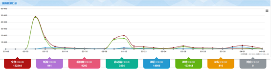 從信息量走勢來看,以3月8日~4月3日14時為監(jiān)測時間段,如下圖所示,輿情整體呈現(xiàn)“波浪式”特征,網(wǎng)民關(guān)注度遠(yuǎn)高于媒體關(guān)注度。