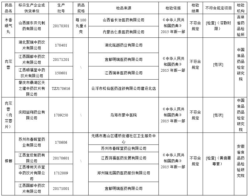 經(jīng)中國食品藥品檢定研究院檢驗,標示為慶陽益翔藥業(yè)有限公司、江西國都中藥飲片有限公司、江西順福堂中藥飲片有限公司、湖北聚瑞中藥飲片有限公司、肇慶市鼎湖區(qū)天之健中藥飲片有限公司生產(chǎn)的5批次肉蓯蓉不符合規(guī)定,不符合規(guī)定項目為性狀。