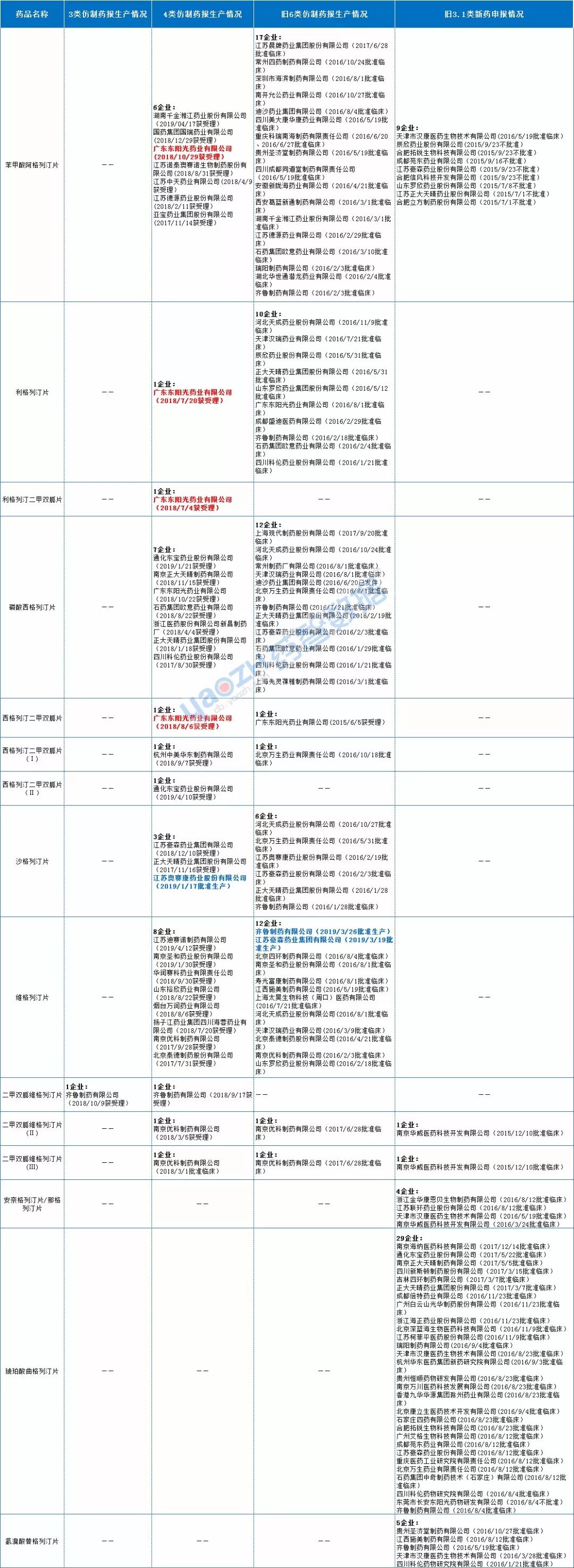 此外,稍后上市的那格列汀、曲格列汀、替格列汀3個品種也有企業(yè)進行了申報,其中于2015年上市的曲格列汀竟有29家企業(yè)進行了舊3.1類新藥申報,且申報時間基本集中在2015年,獲批臨床集中在2016年,其中不乏正大天晴、海正、石藥、齊魯?shù)葘嵙^強的企業(yè)。