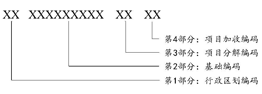 醫(yī)療服務(wù)項(xiàng)目編碼分4個(gè)部分共15位,通過(guò)阿拉伯?dāng)?shù)字按特定順序排列表示。其中,第1部分為行政區(qū)劃編碼,第2部分為基礎(chǔ)編碼,第3部分為項(xiàng)目分解編碼,第4部分為項(xiàng)目加收編
