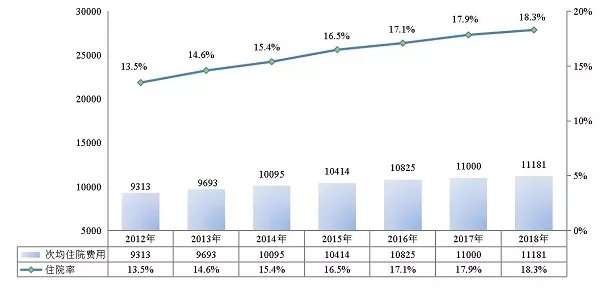2012-2018年職工醫(yī)保次均住院費用和住院率