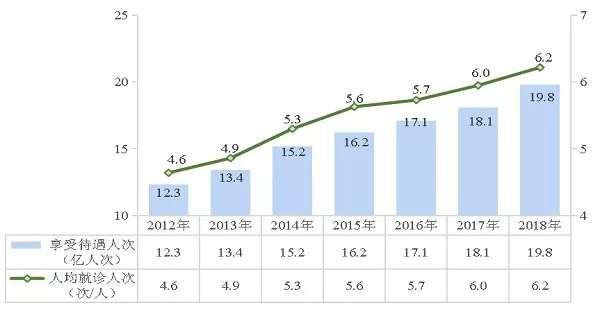 2018年參加職工醫(yī)保人員享受待遇19.8億人次,比上年增長9.0%,增幅提高3.0個百分點。其中:普通門急診17.1億人次,比上年增長8.8%;門診慢特病2.1億人次,比上年增長12.7%;住院0.6億人次,比上年增長6.7%。