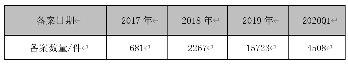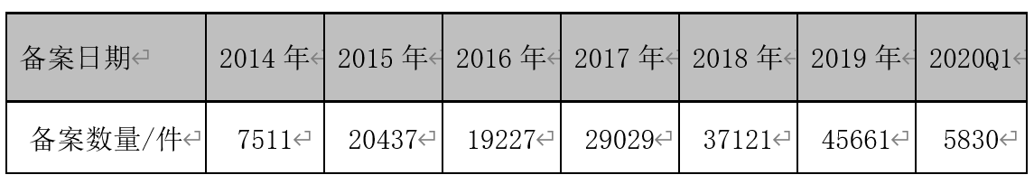 2014年~2019年國(guó)內(nèi)非特化妝品年度備案數(shù)量(數(shù)據(jù)來(lái)源:國(guó)家藥品監(jiān)督管理局,截止日期2020年4月1日)