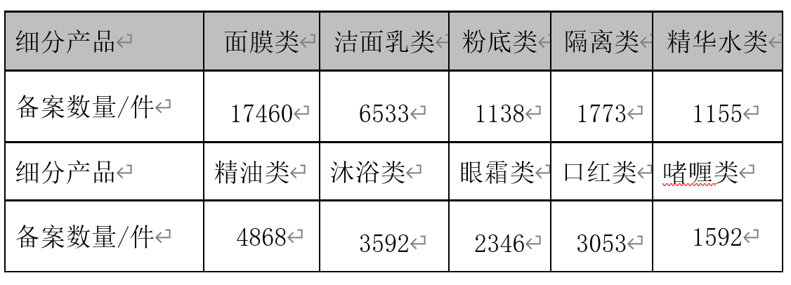 2020年第一季度國(guó)內(nèi)化妝品備案產(chǎn)品類別(數(shù)據(jù)來(lái)源:國(guó)家藥品監(jiān)督管理局,截止日期2020年4月1日)