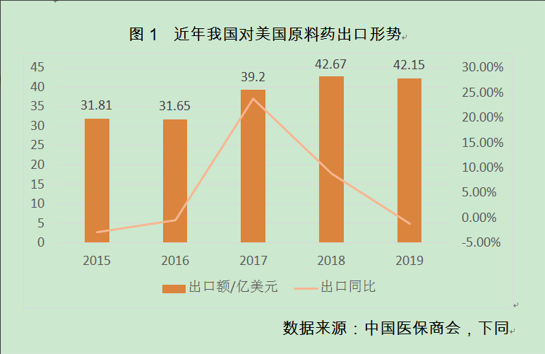 圖1 近年我國對美國原料藥出口形勢 數(shù)據來源:中國醫(yī)保商會 下同